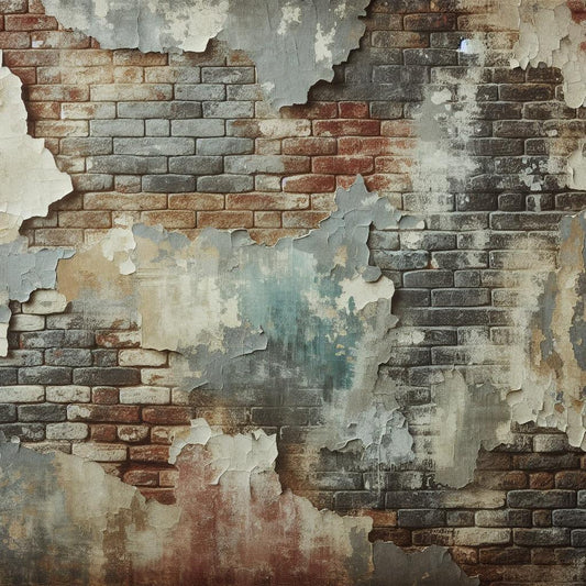 Stein Tapete | Wand mit beschädigtem weißen Putz und roten und schwarzen Ziegeln