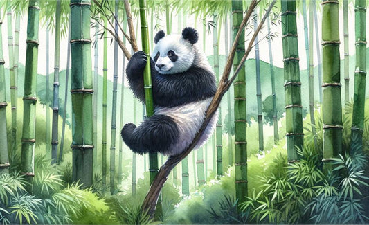 Tapete Tiere Panda | Grüner Bambuswald in Aquarell