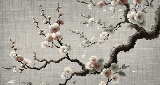 Tapete Kirschblüte | Japanischer Baum in grauen Tönen