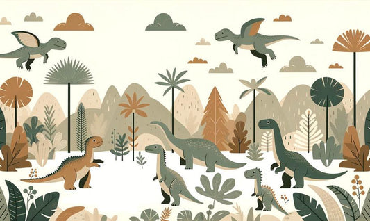 Dinosaurier Tapete | Terrakotta und grüne Töne
