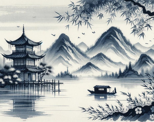 Japanische Tapete | Japanischer Tempel im Aquarell-Design