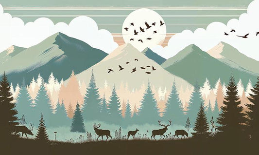 Kindertapete Berge | Tannen, Tiere und Vollmond