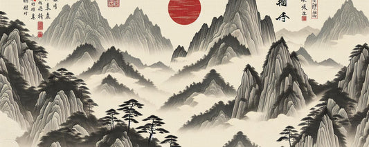 Japanische Tapete | Berglandschaft mit roter Sonne aus Japan