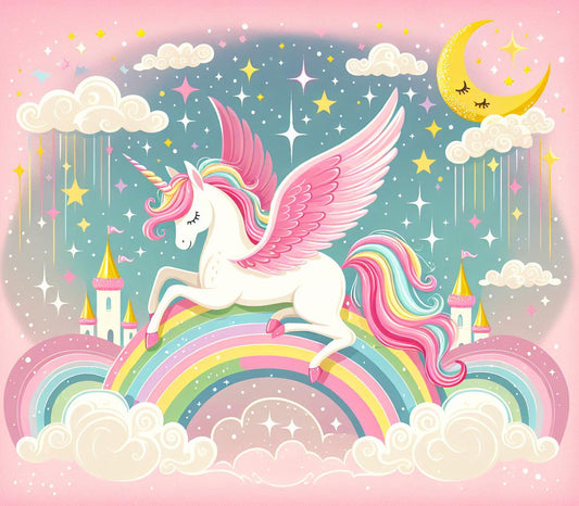 Regenbogen Tapete | Einhorn und Wolke auf rosa Hintergrund