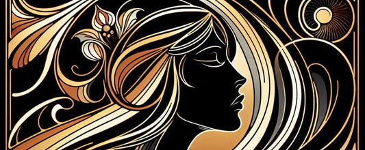 Art Deco Tapete | Frau mit goldenen Haaren auf schwarzem Hintergrund