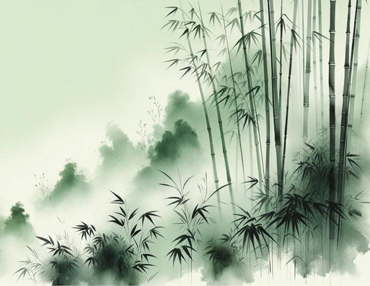 Bambus Tapete | Grüner Bambuswald im chinesischen Tinten- und Aquarellstil