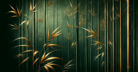 Bambus Tapete | Grüne Stängel und goldene Blätter