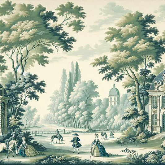 Art Deco Tapete | Toile de Jouy Stil mit königlichem Anwesen