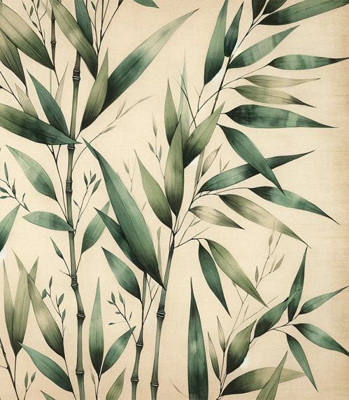 Bambus Tapete | Vintage Illustration grüner und neutraler Bambusstängel