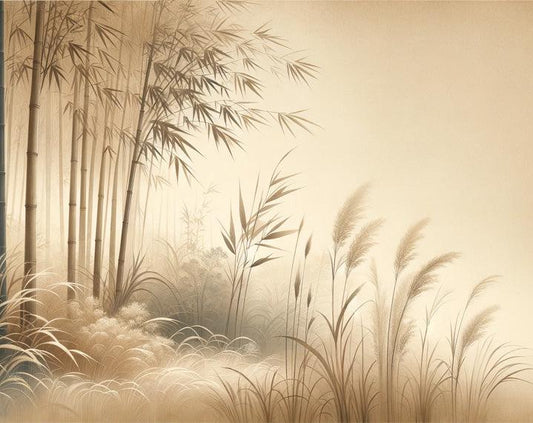Bambus Tapete | Bambuswald in Beige- und Vintage-Tönen mit hohen Gräsern