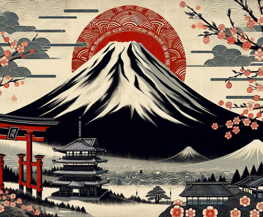 Japanische Tapete | Mont Fuji und traditionelles japanisches Design