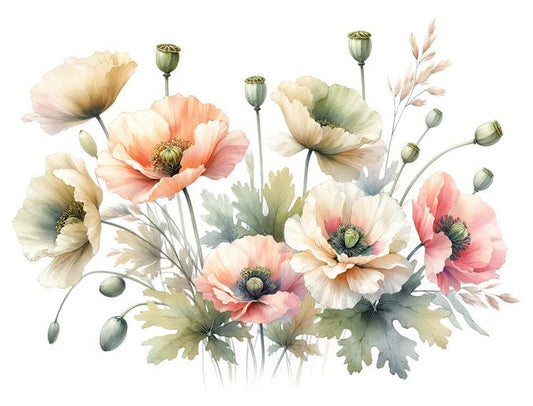 Tapete Blumen | Vintage Blumen auf weißem Hintergrund