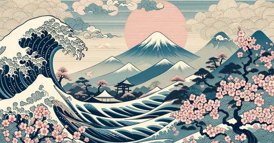 Japanische Tapete | Roter Sonne und blaugetönten WellenNormaler Preis 29,90€/m²Verkaufspreis 29,90€ Normaler PreisGrundpreis pro