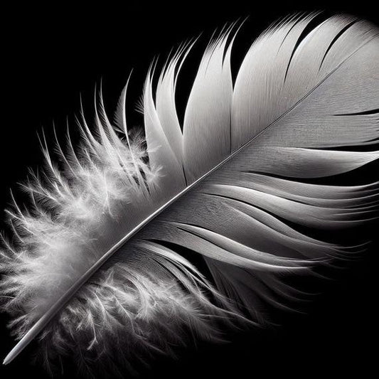 Tapete Federn | Realistische weiße Feder auf dunkelblauem Hintergrund
