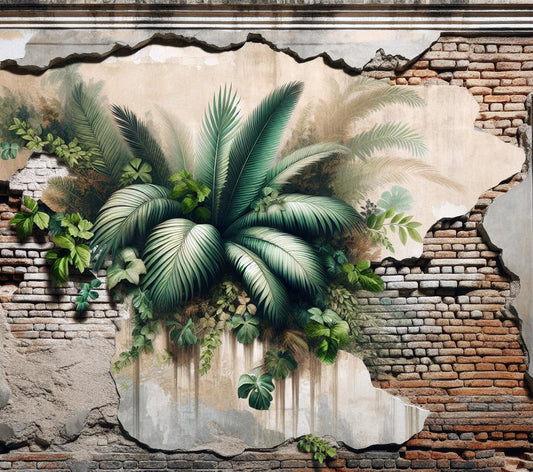 Stein Tapete | Tapete mit grünen Blättern in 3D