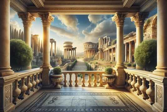 3D Tapete | Balkon mit Blick auf römische Denkmäler