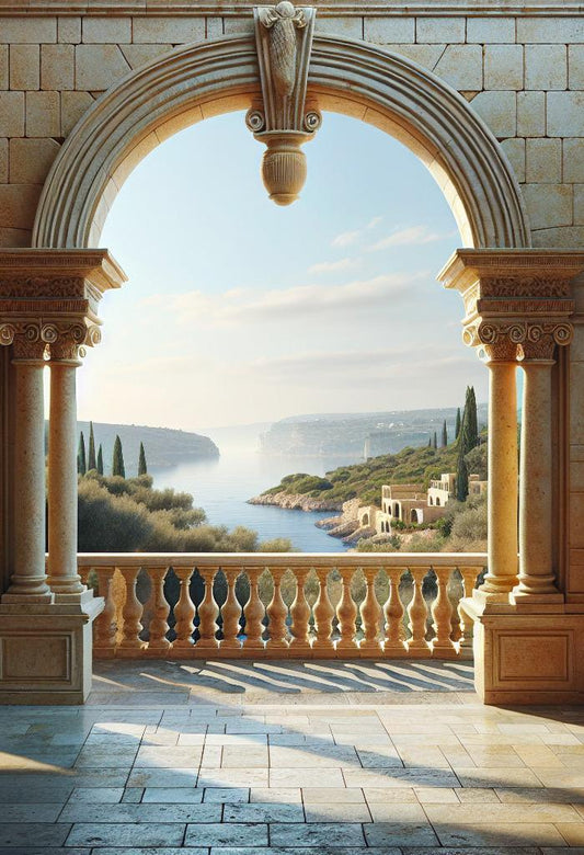 3D Tapete | Antiker Ort mit Blick auf das Mittelmeer