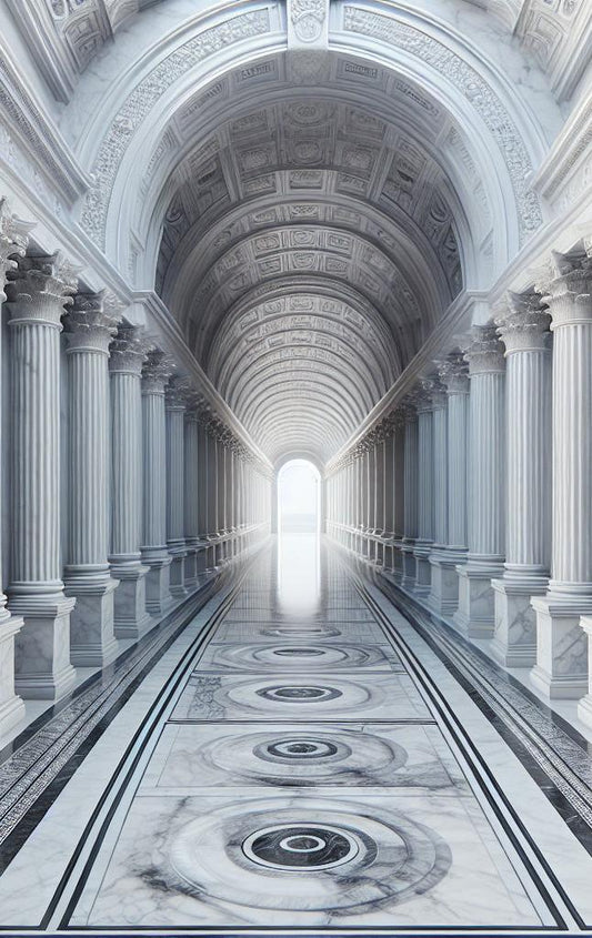 3D Tapete | Antikes weißes Palast mit Säulen und Statuen