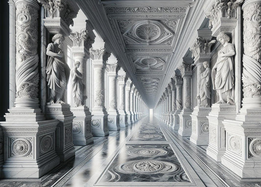 3D Tapete | Palast mit antiken Säulen und griechischen Statuen