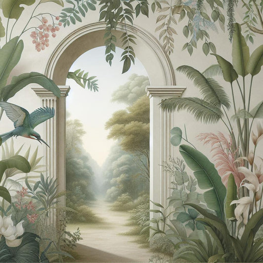 3D Tapete | Pflanzenbogen mit tropischen Pflanzen