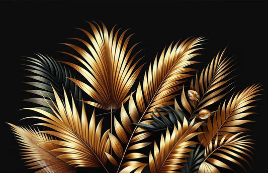 Tapete Schwarz Gold | Palmenblätter-Tapete