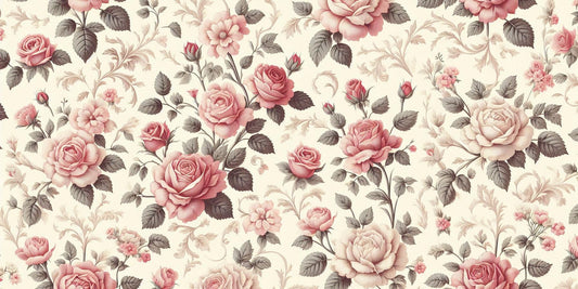 Tapete Blumen Rosa | Vintage-Rosen in Beigetönen