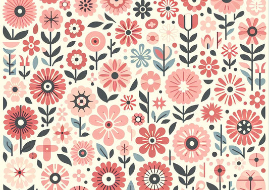 Tapete Blumen Rosa | Blumen im Retro-Stil der 90er Jahre