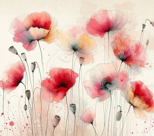 Tapete Blumen | Mohnblumen in neutralen und pastellfarbenen Tönen