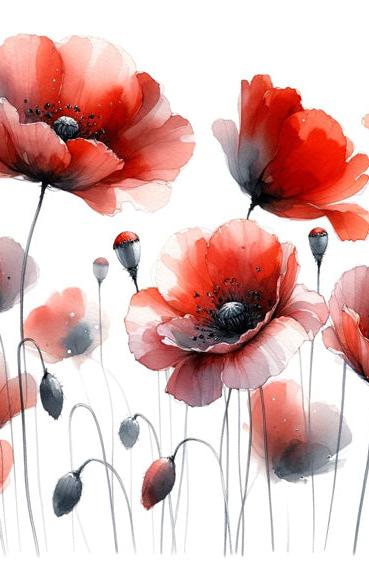 Tapete Mohnblume | Schwarze Stängel und rote Blütenblätter