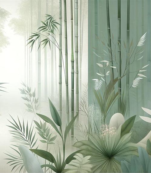 Bambus Tapete | Bambusstängel und grüne Blätter
