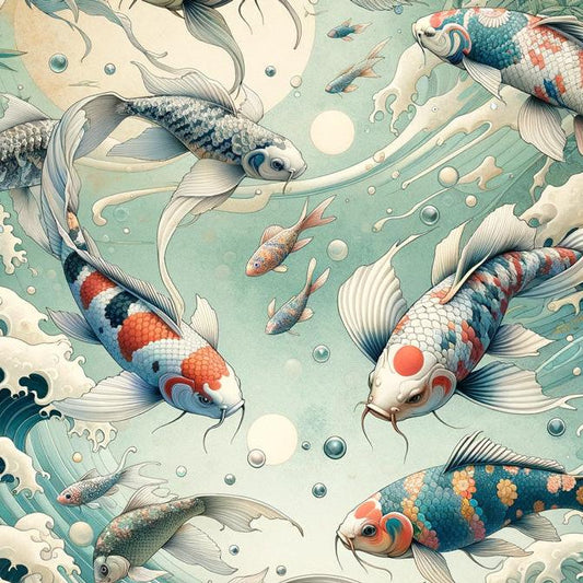 Japanische Tapete | Koi-Karpfen und japanische Welle