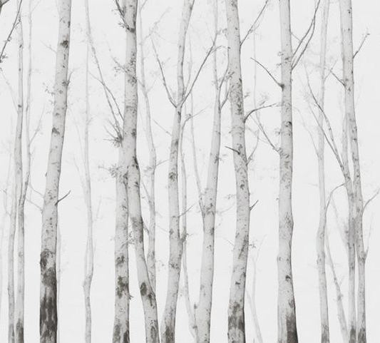 Birkenbaum Tapete | Birkenwald Zeichnung in neutralen Tönen