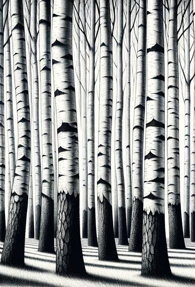 Tapete Birke | Schwarz-weiße Zeichnung eines Birkenwaldes