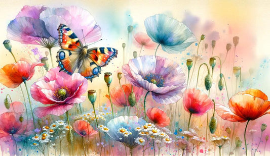 Tapete Schmetterling | Blumen und Knospen Tapete