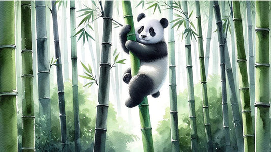 Tapete Tiere Panda | Grüner Bambuswald mit hängendem Panda