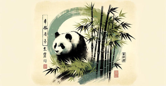 Tapete Tiere Panda | Schwarz-Weiß japanischer Stil