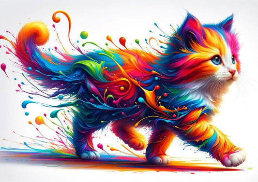 Katze Tapete | Angorakatze mit grünen Augen auf farbenfroher Aquarelltapete