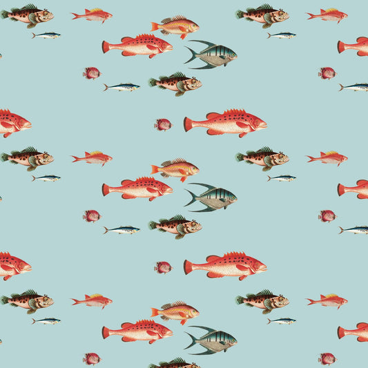 Tapete Fische | Bunt auf Himmelblauem Hintergrund