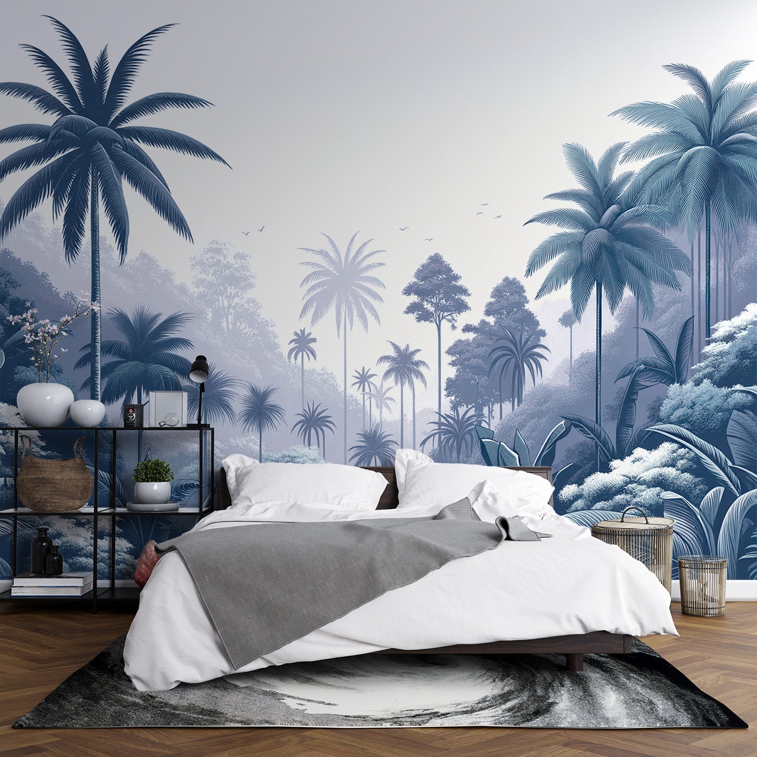 Ob in farbiger oder schwarz-weißer Version, die Dschungel Tapete wird immer beliebter, um elegante und moderne Häuser zu schmücken. Ob als Schlafzimmer Tapete für Erwachsene, Wohnzimmer Tapete oder Esszimmer Tapete, unsere Kollektion von Entenblau Dschungel Tapeten passt perfekt in alle Räume Ihres Hauses und schafft eine exotische und gleichzeitig anspruchsvolle Atmosphäre.