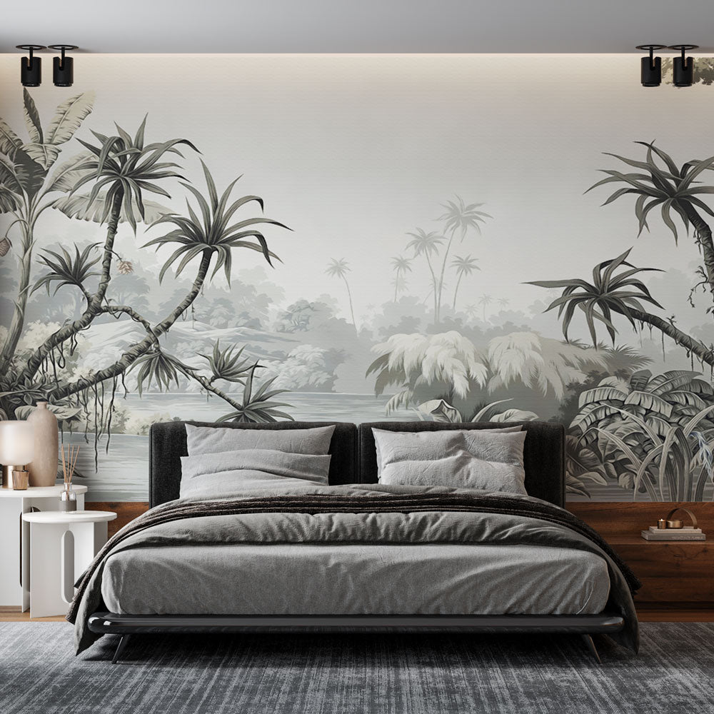 Sehr im Trend, ist die panoramische Tapete mit Palmenmuster sehr beliebt und wird zur Referenz des Moments. Die Tapete mit Palmenmuster in Schwarz und Weiß und die exotische Tapete werden zu wahren Kunstwerken, sobald sie an der Wand Ihres Schlafzimmers oder Ihres Wohnzimmers angebracht sind. Sie verleihen Ihrem Raum eine Note von Chic und Modernität. Wählen Sie eine originelle Tapete und bringen Sie einen Hauch Exotik in Ihr Zuhause.