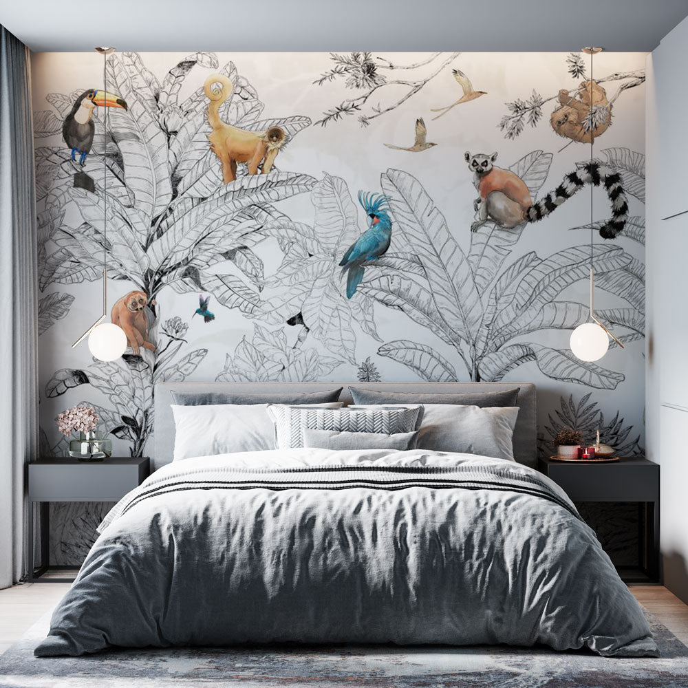 Tukan Tapete, Flamingo Tapete, Affe Tapete: In dieser Kollektion finden Sie alle Arten tropischer Tiere und tropischer Blumen! Es ist die aktuelle Tapetenmode, die Ihrem Schlafzimmer, Esszimmer oder Wohnzimmer ein wenig Leben einhaucht. Wählen Sie eine exotische Tapete, um Ihrem Interieur einen exotischen Touch zu verleihen.