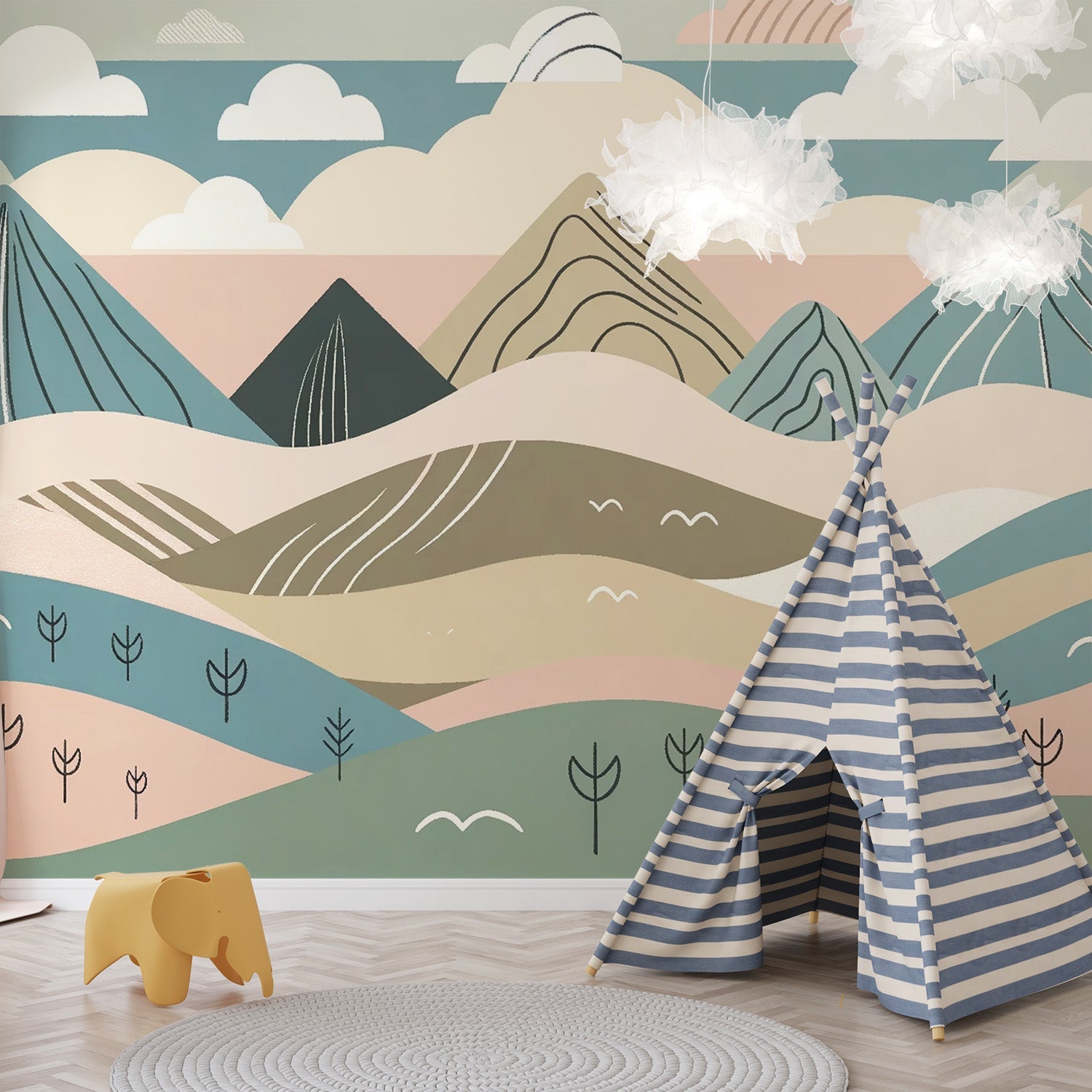 Entdecken Sie unsere Kollektion von Baby-Bergtapeten, die eine Auswahl sanfter und beruhigender Muster bieten, die die Natur und die Ruhe der Berge widerspiegeln. Die Baby-Bergtapete mit zarten Nuancen und kindlichen Illustrationen wird immer beliebter, um eine ruhige und beruhigende Atmosphäre in Babyzimmern zu schaffen. Ob als Tapete für das Babyzimmer oder Tapete für das Spielzimmer, diese Art von Wanddekoration bringt bereits in jungen Jahren einen Hauch von Natur und Entspannung.