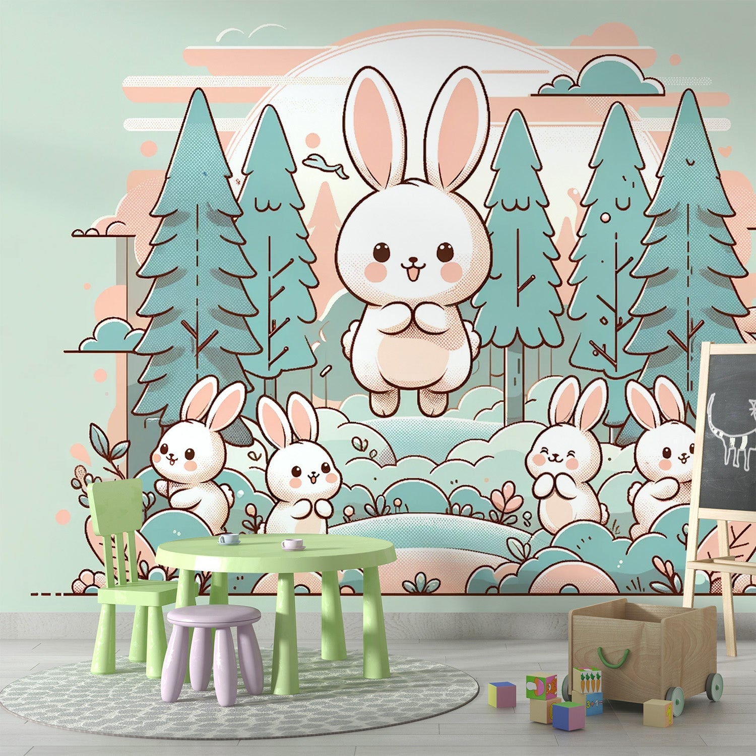Die Kaninchen Tapete, ob bunt oder in Schwarz-Weiß, wird immer beliebter, um Ihrem Zuhause einen Hauch von Charme und Fantasie zu verleihen. Ob im Kinderzimmer, im Wohnzimmer oder im Spielzimmer, unsere Kollektion von Kaninchen Tapeten fügt sich harmonisch in jede Einrichtung ein und schafft eine warme und gemütliche Atmosphäre.