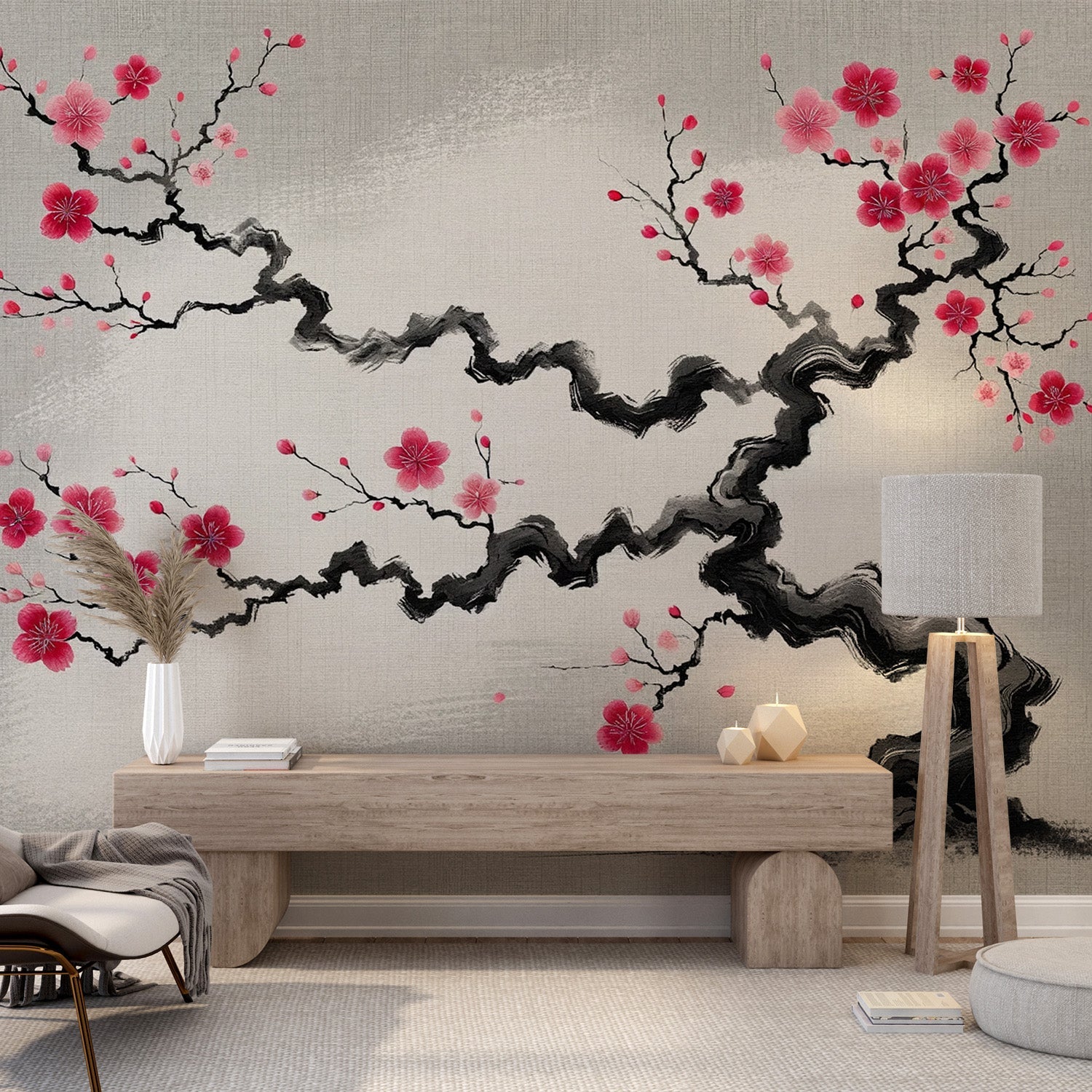 Die Sakura Tapete, ob bunt oder in Schwarz-Weiß, wird immer beliebter, um Ihrem Interieur Eleganz und Raffinesse zu verleihen. Ob im Schlafzimmer, im Wohnzimmer oder im Esszimmer, unsere Kollektion von Sakura Tapeten passt harmonisch zu allen Dekorationsstilen und bietet eine beruhigende und charmante Atmosphäre.