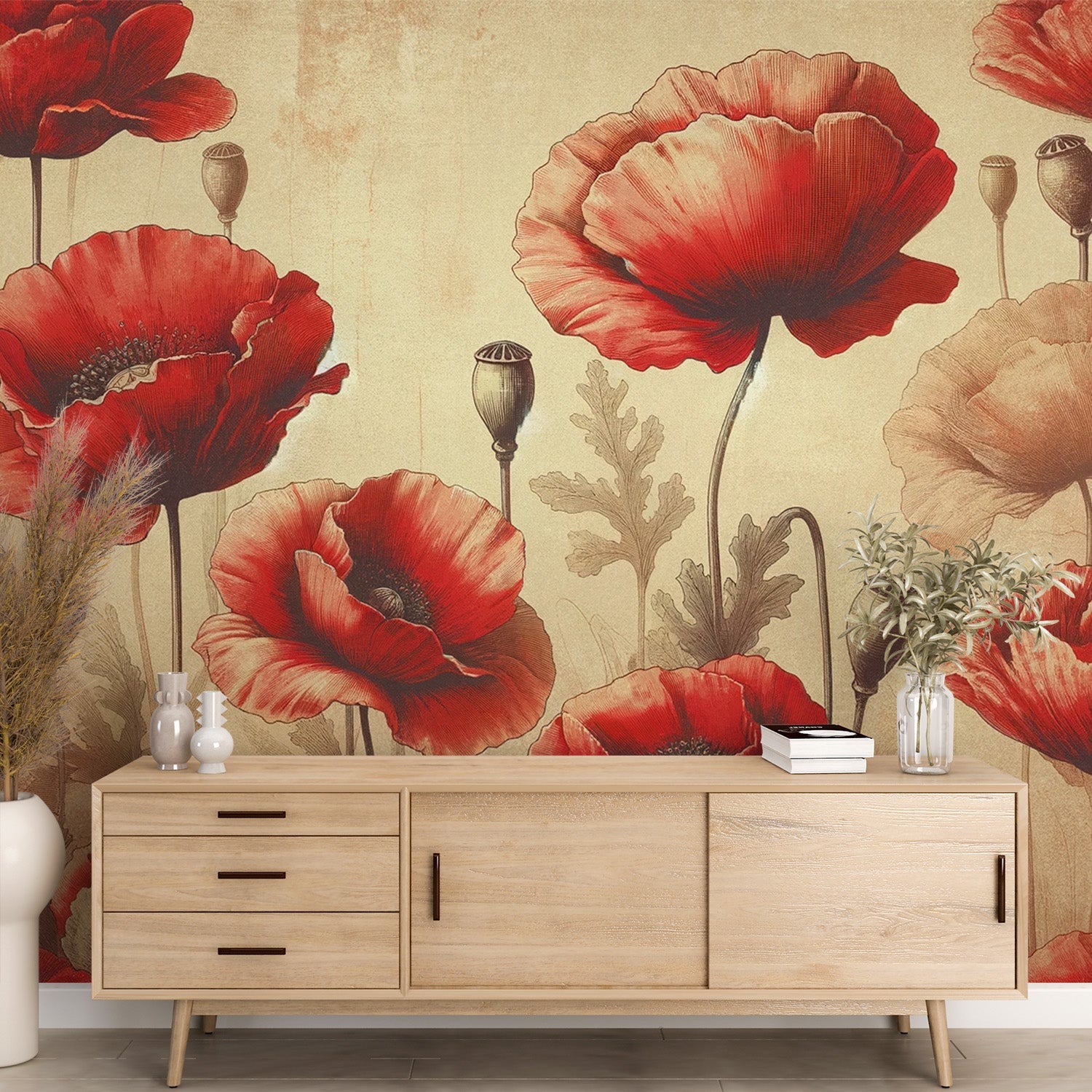 Entdecken Sie unsere Auswahl an Klatschmohn Tapeten, die eine breite Palette von Panoramamustern bieten, die die Schönheit der Mohnblumen hervorheben.