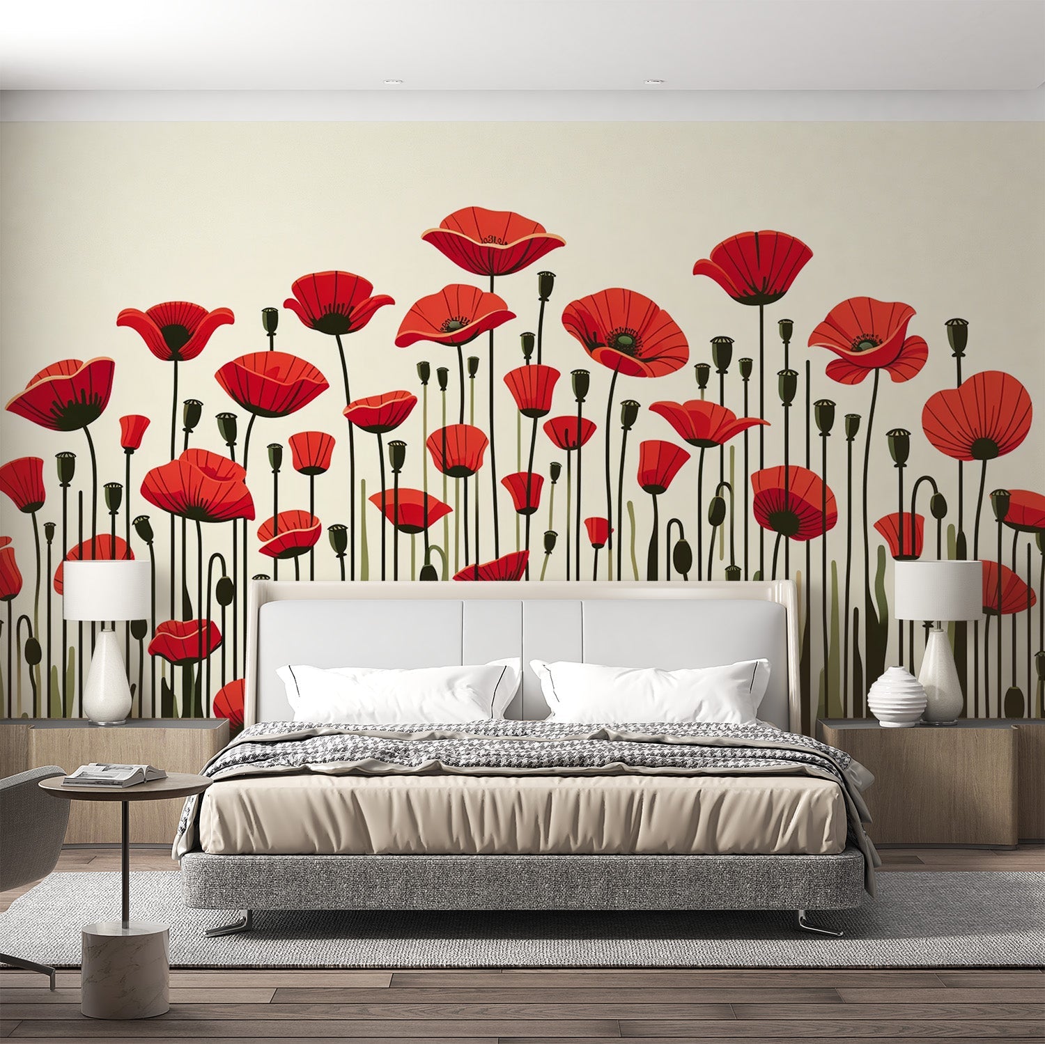 Entdecken Sie unsere Auswahl an Klatschmohn Tapeten, die eine breite Palette von Panoramamustern bieten, die die Schönheit der Mohnblumen hervorheben.