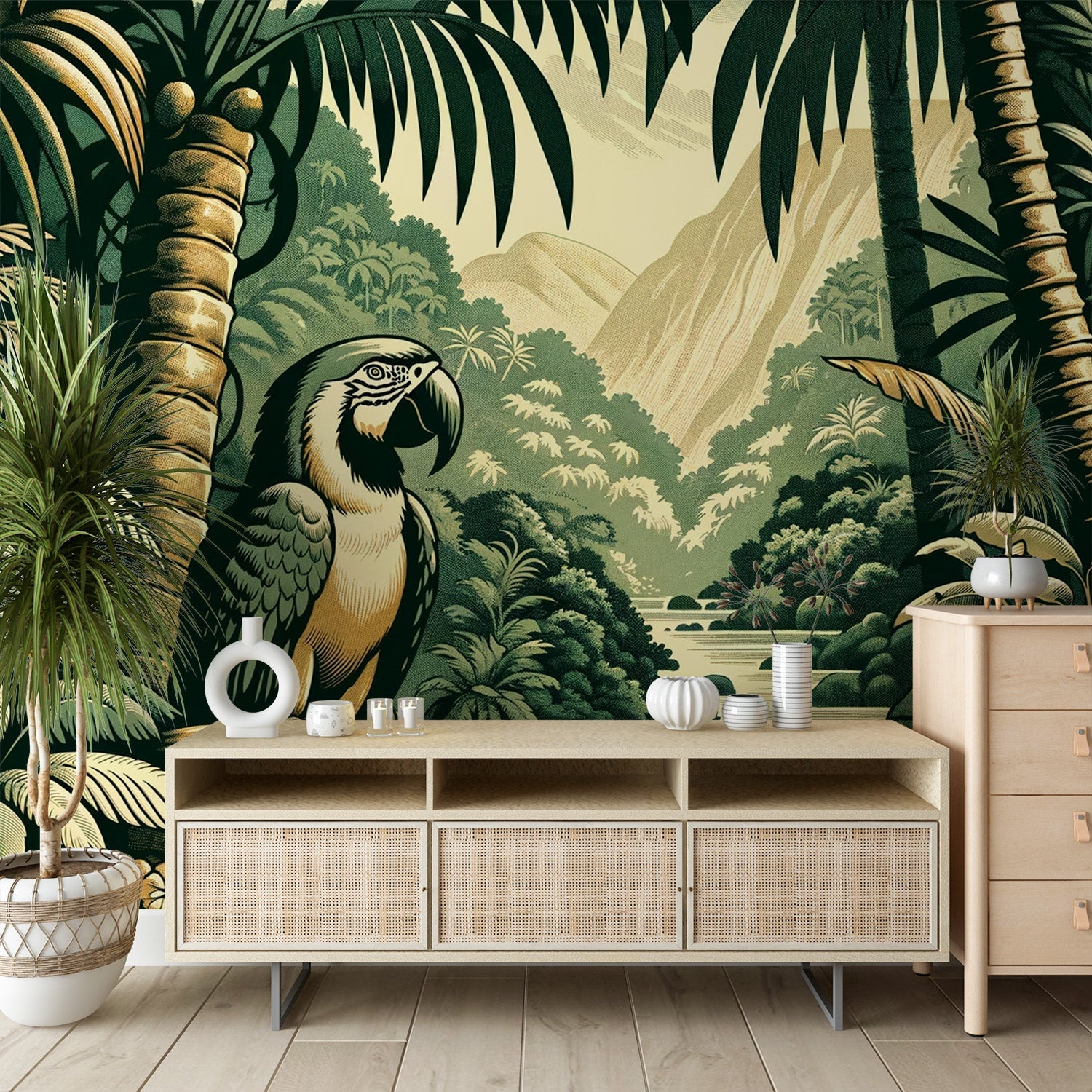 Die Papageientapete wird immer beliebter, um modernen und eleganten Häusern einen Hauch von Exotik und Farbe zu verleihen. Egal ob für ein Erwachsenenzimmer, ein Wohnzimmer oder ein Esszimmer, die Papageientapete bringt tropisches Flair und einen Hauch von Trend in alle Räume Ihres Hauses.