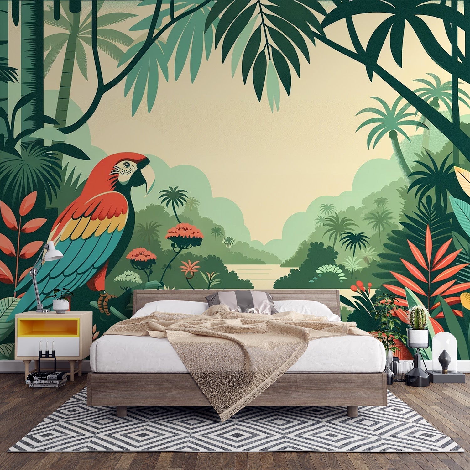 Die Papageientapete wird immer beliebter, um modernen und eleganten Häusern einen Hauch von Exotik und Farbe zu verleihen. Egal ob für ein Erwachsenenzimmer, ein Wohnzimmer oder ein Esszimmer, die Papageientapete bringt tropisches Flair und einen Hauch von Trend in alle Räume Ihres Hauses.