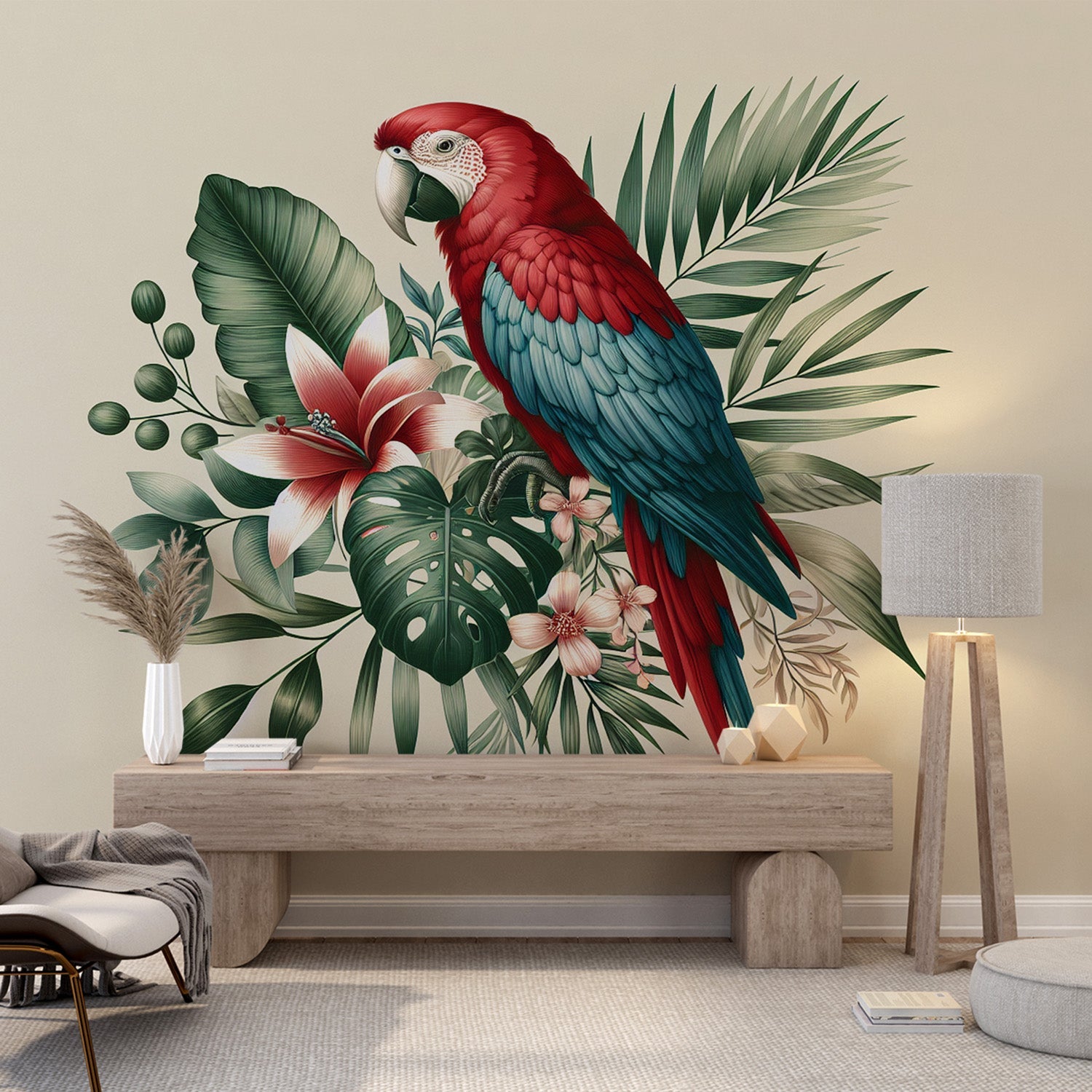 Die Papageientapete wird immer beliebter, um modernen und eleganten Häusern einen Hauch von Exotik und Farbe zu verleihen. Egal ob für ein Erwachsenenzimmer, ein Wohnzimmer oder ein Esszimmer, die Papageientapete bringt tropisches Flair und einen Hauch von Trend in alle Räume Ihres Hauses.