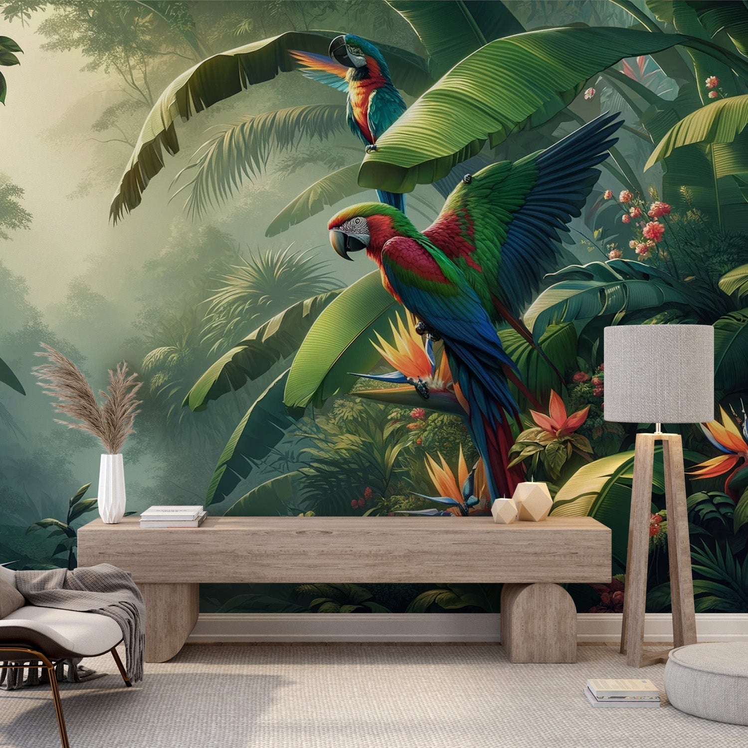 Entdecken Sie unsere Auswahl an tropischen Dschungeltapeten, die eine Vielzahl von Panorama-Tapeten mit exotischen Blattmustern bieten.
